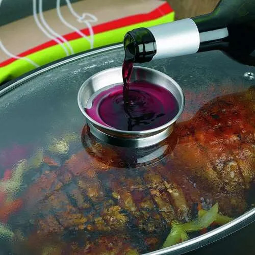 Az üveg fedél aroma- gomb és gőz portja lehetővé teszi folyadékok, mint a bor, húsleves vagy víz bejuttatását a fedél felemelése nélkül.